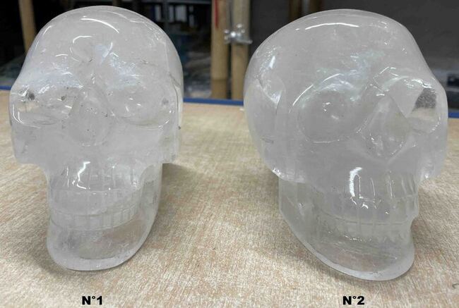 Gros crâne sculpté en cristal de roche. Peut être ...