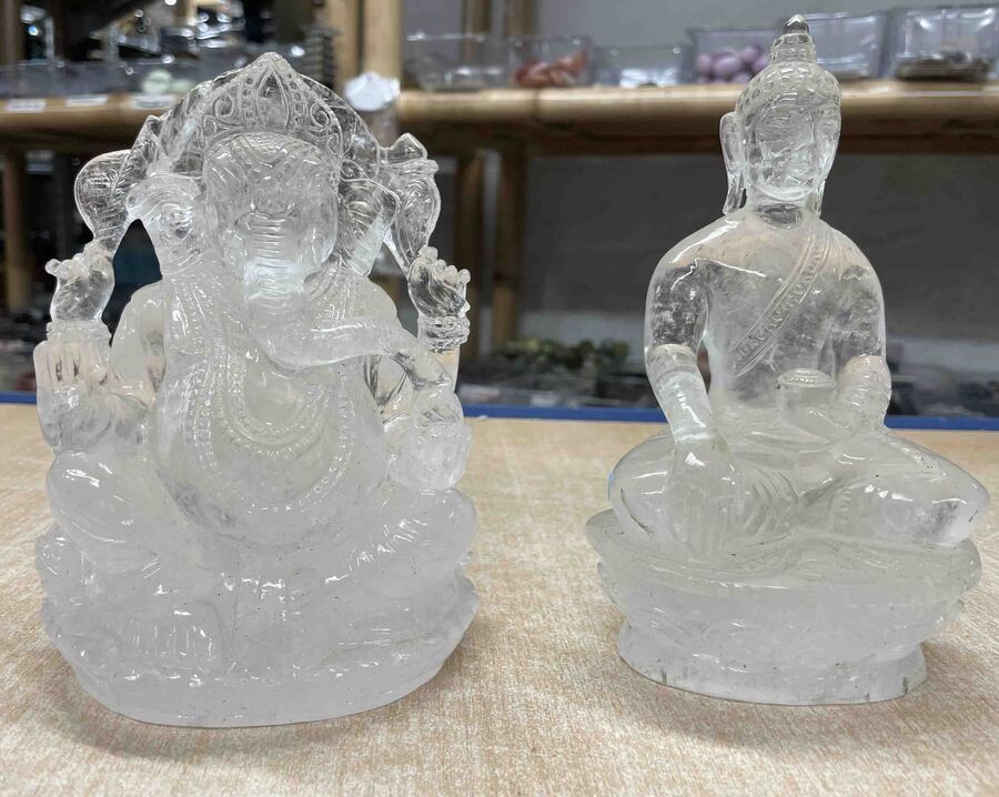 Grandes sculptures de Ganesh ou de Bouddha en cristal de roche. Peut ...