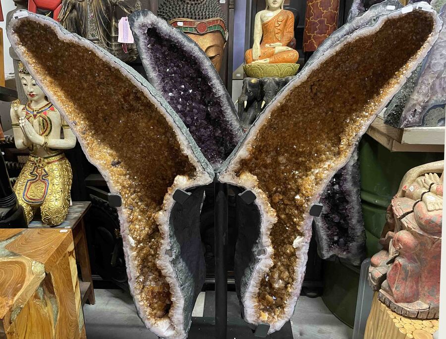 Une très grande GÉODE de Citrine en PAPILLON posé sur un pied, en ...