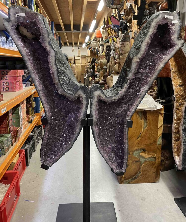 Une Grande GÉODE d’Améthyste en PAPILLON posé sur un pied, en ...