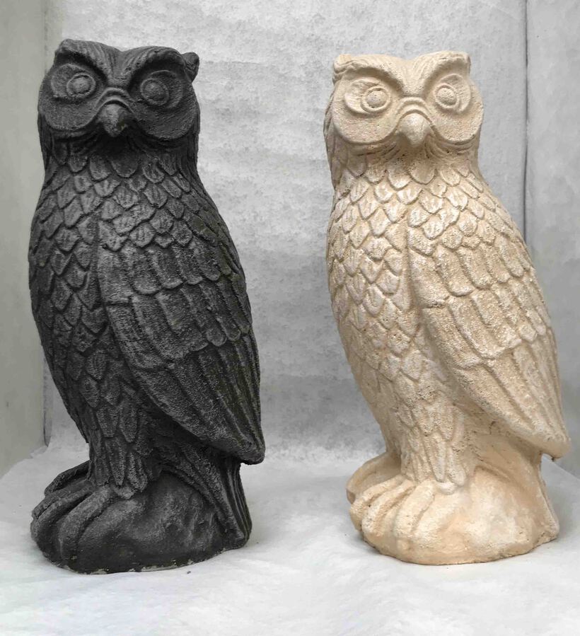 Cette statue de hiboux en pierre est de réalisation artisanale ...