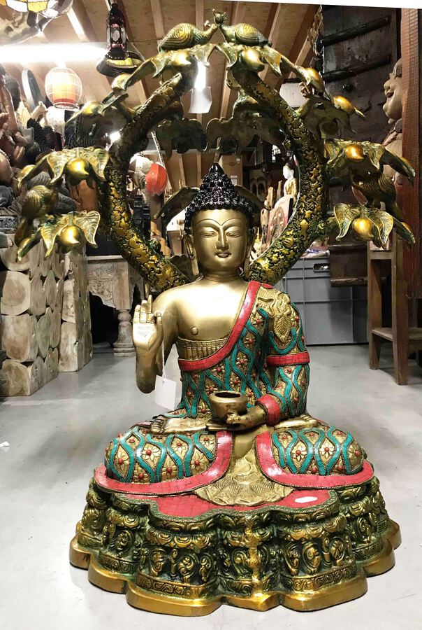 Article au de gamme Statue de Bouddha assis en bronze de couleur. Assis sous ...