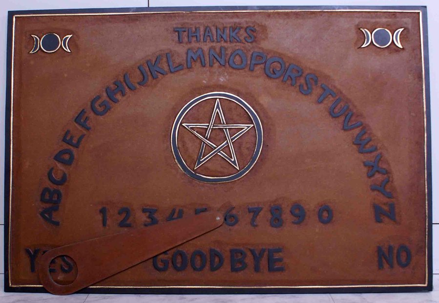 plateau de ouija en bois.
