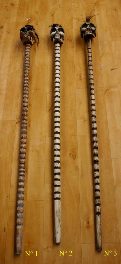 BATON surmonté d'une TETE DE MORT en bois d'albasia - H : 160 cm