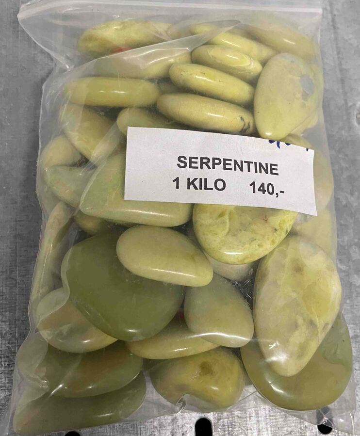La pierre roulée de Serpentine aide en élevant l’esprit et éveillant les sens,